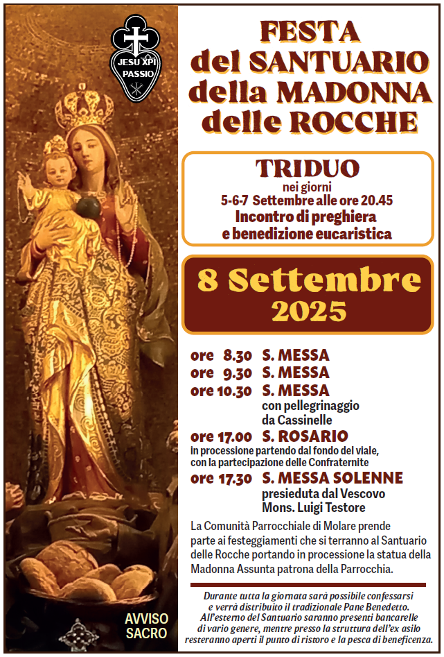 Feriale (fino a Sabato mattina): 09:30 – 11:30; 15:30 – 19:00